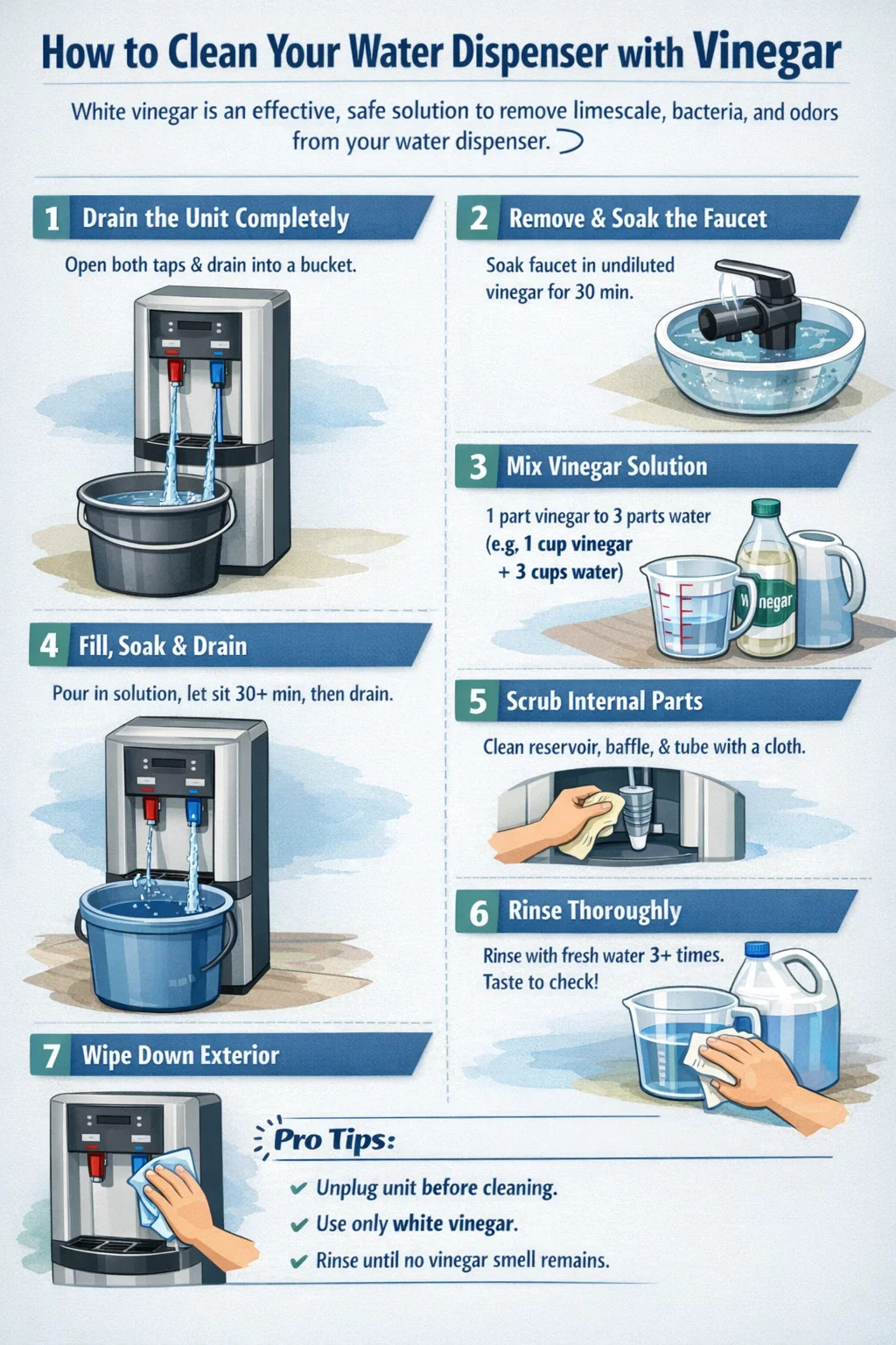 De core vinegar cleaning method applies to all dispenser types, but the specifics vary. Understanding your unit's design ensures you don't miss any surface.