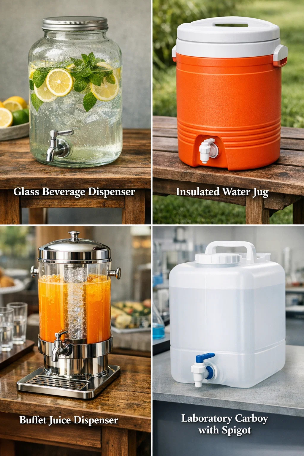 Algemeen gebruik: In de ogen van scheikundigen of brouwliefhebbers wordt het een 'fles met grote capaciteit en kraan' of 'opslagtank' genoemd. Dit type tapkraan heeft doorgaans uitstekende afdichtingseigenschappen en wordt gebruikt om grote hoeveelheden gezuiverd water of chemische reagentia op te slaan.